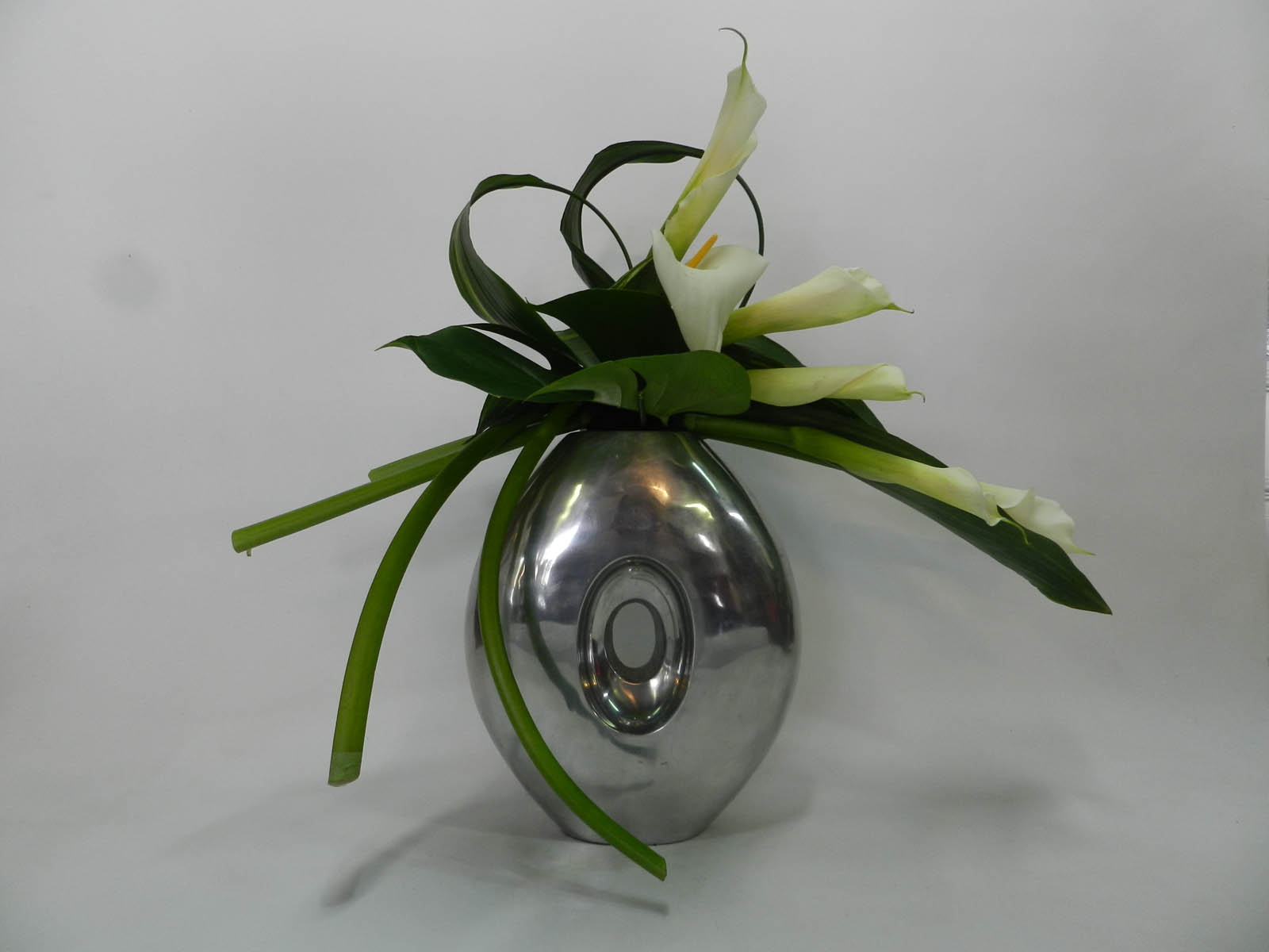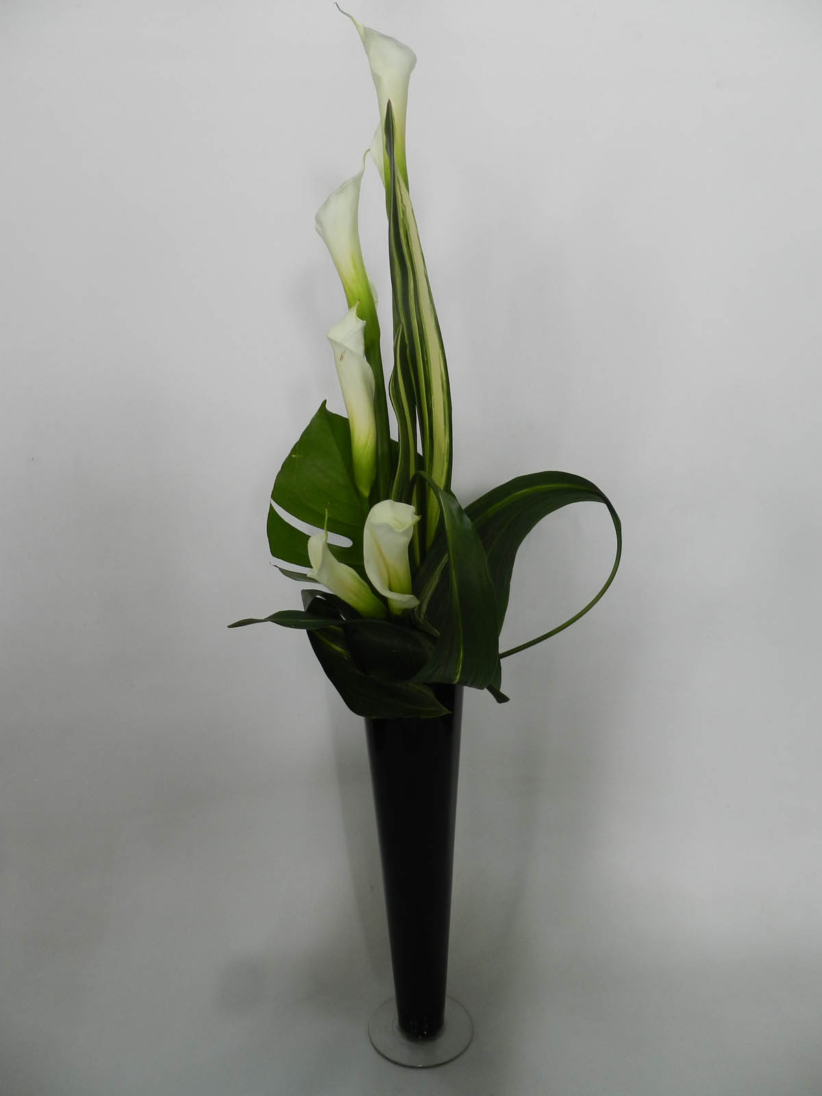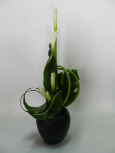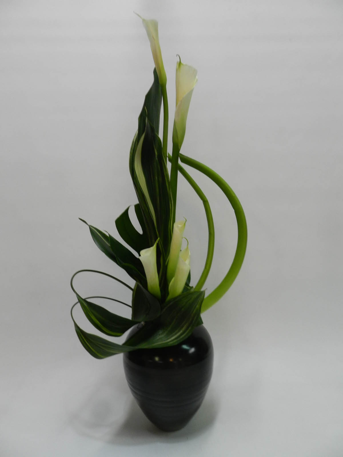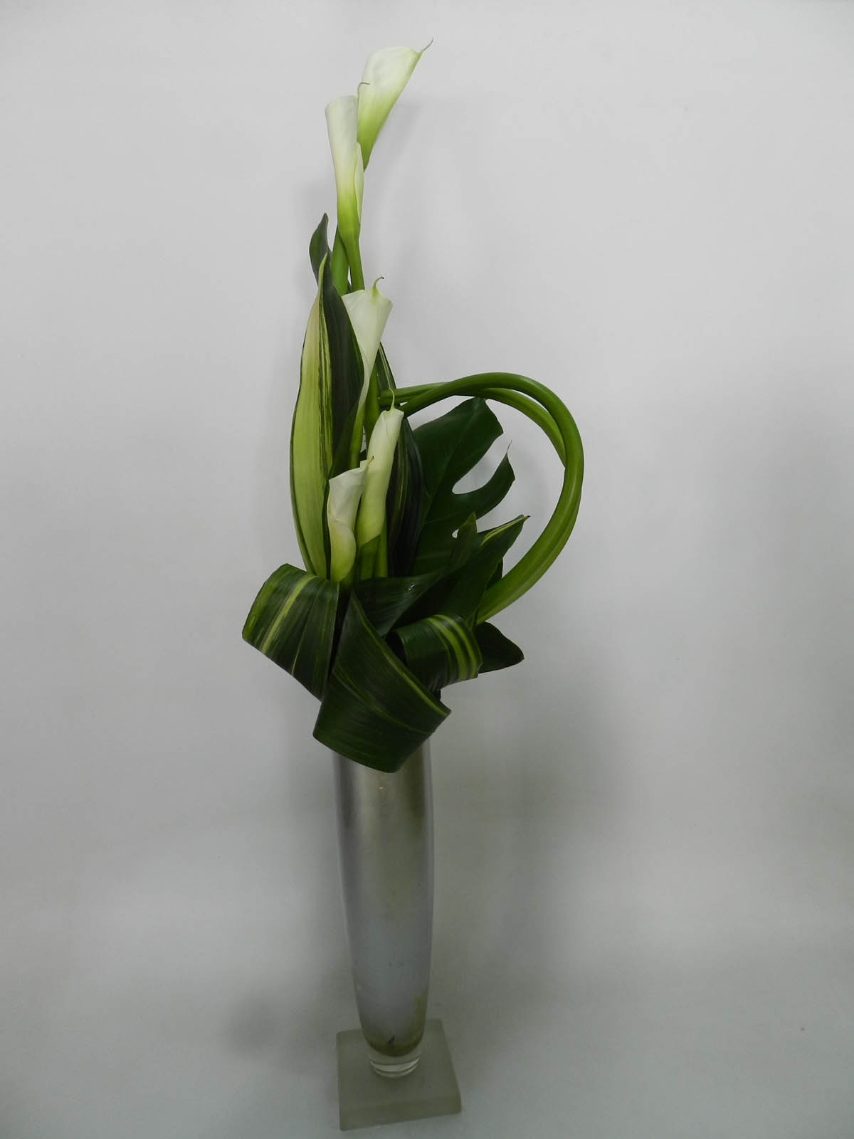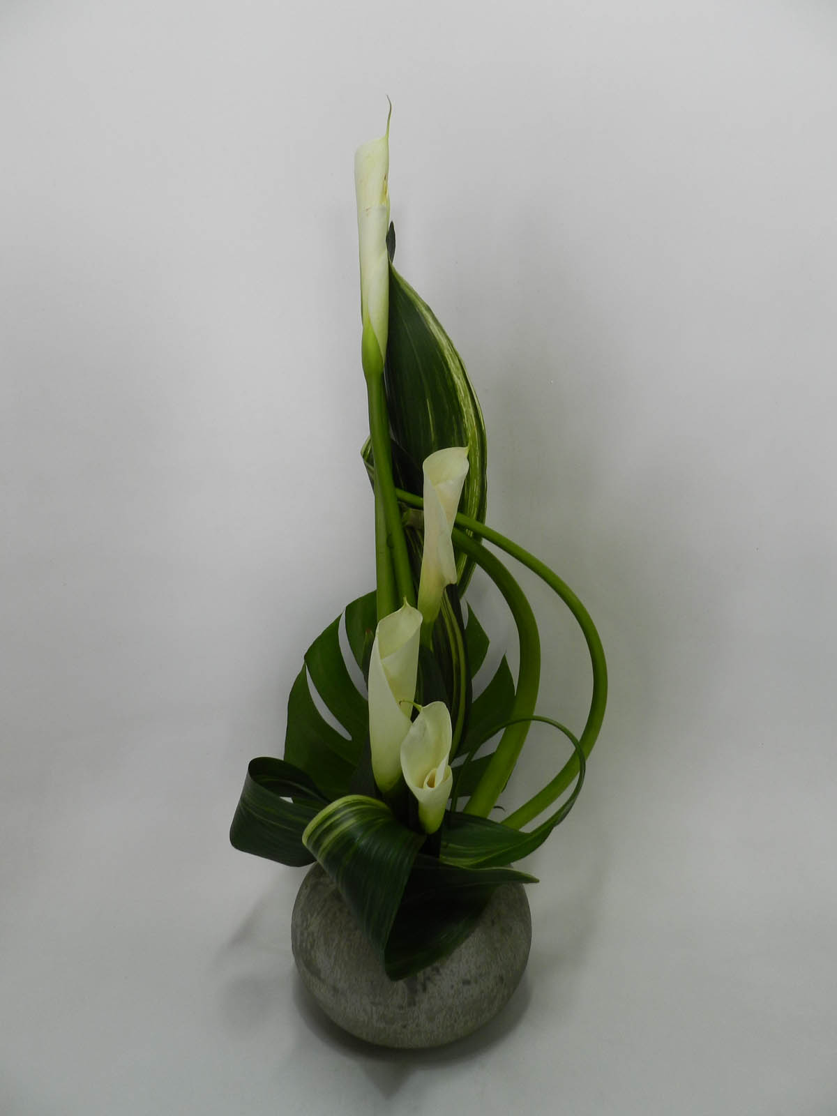 | Réalisation des élèves avec arum, phormium, aspidistra panaché, monstera … |