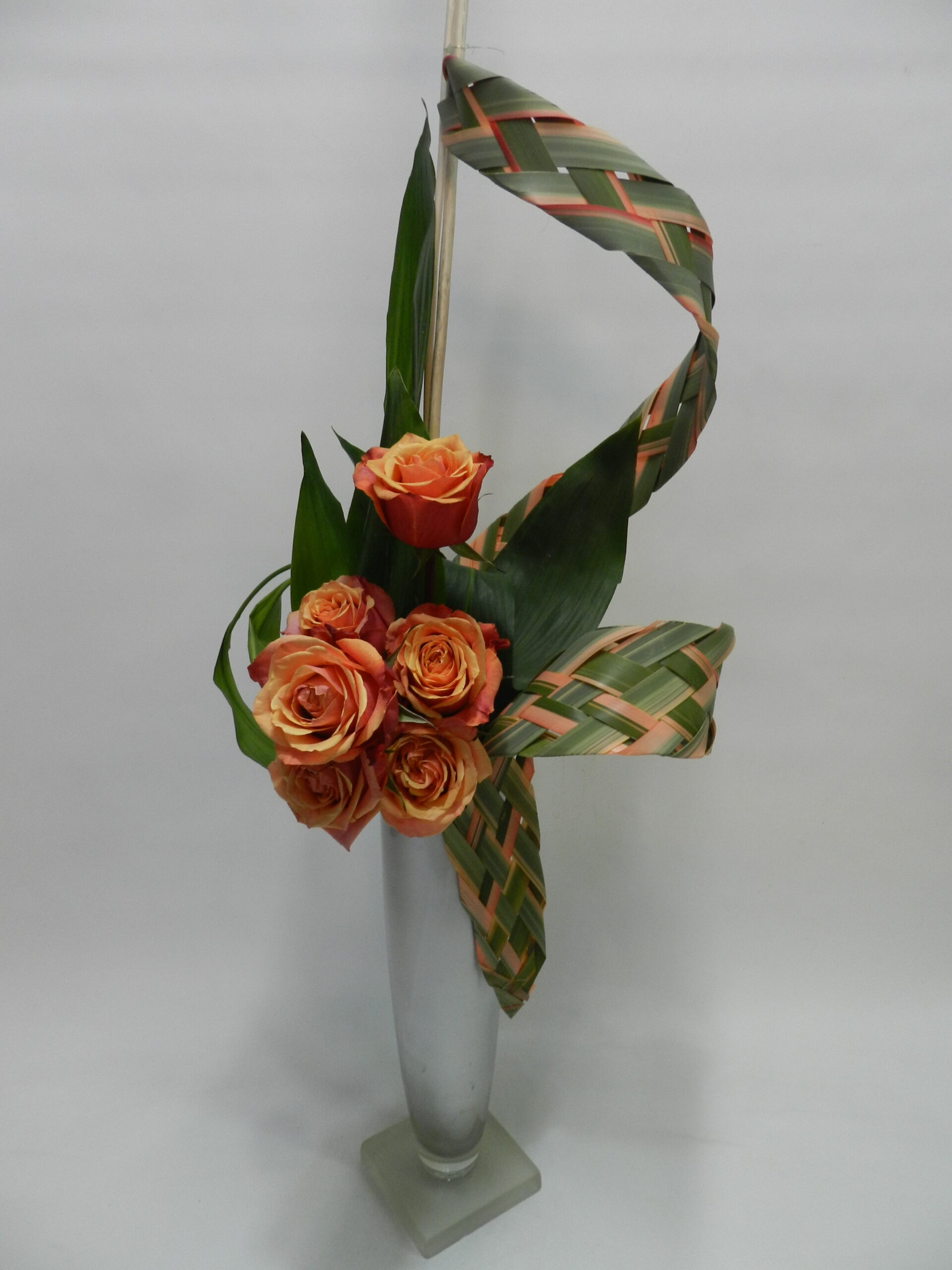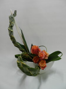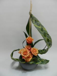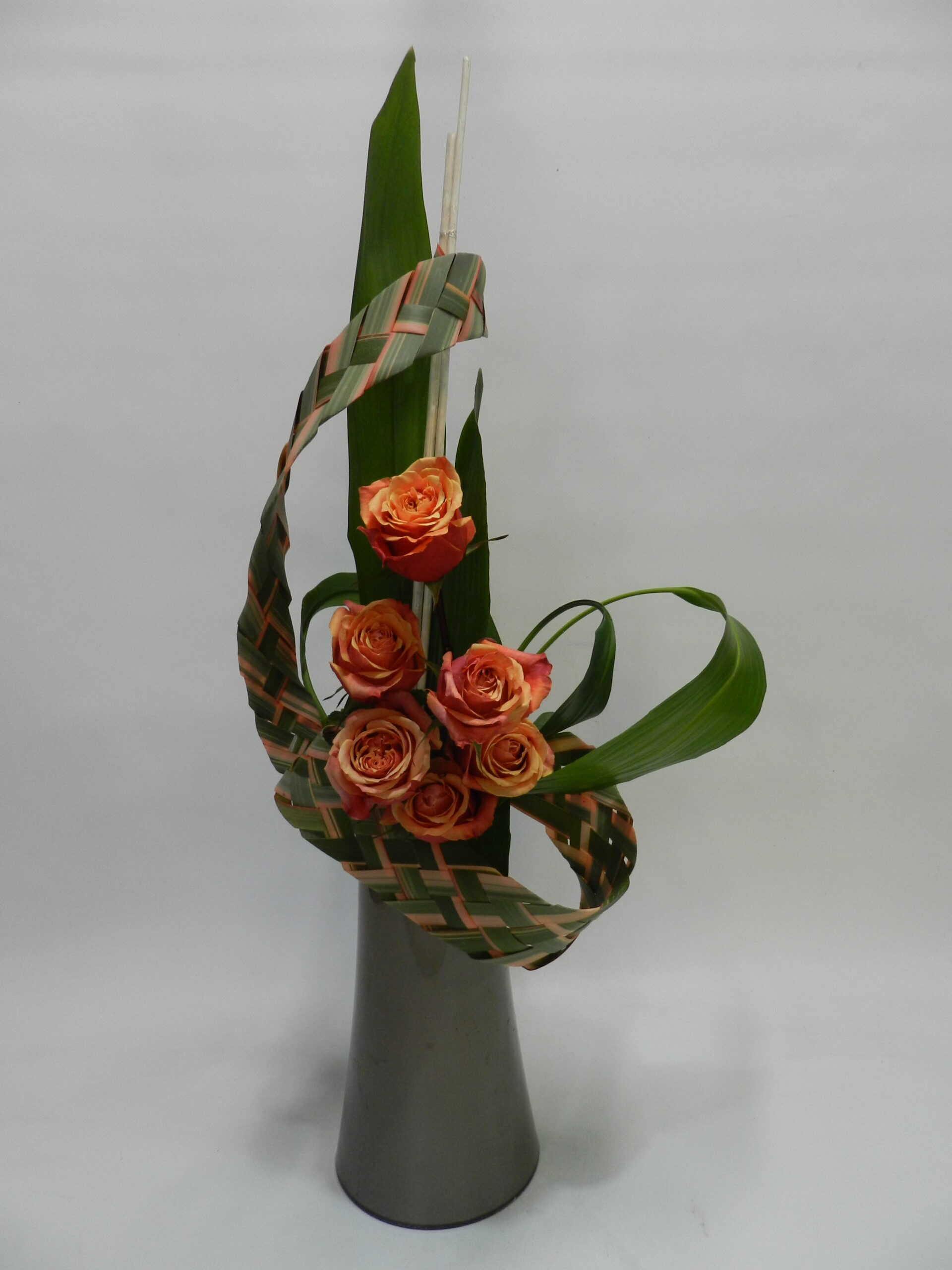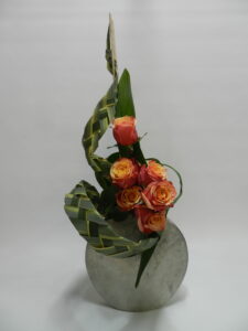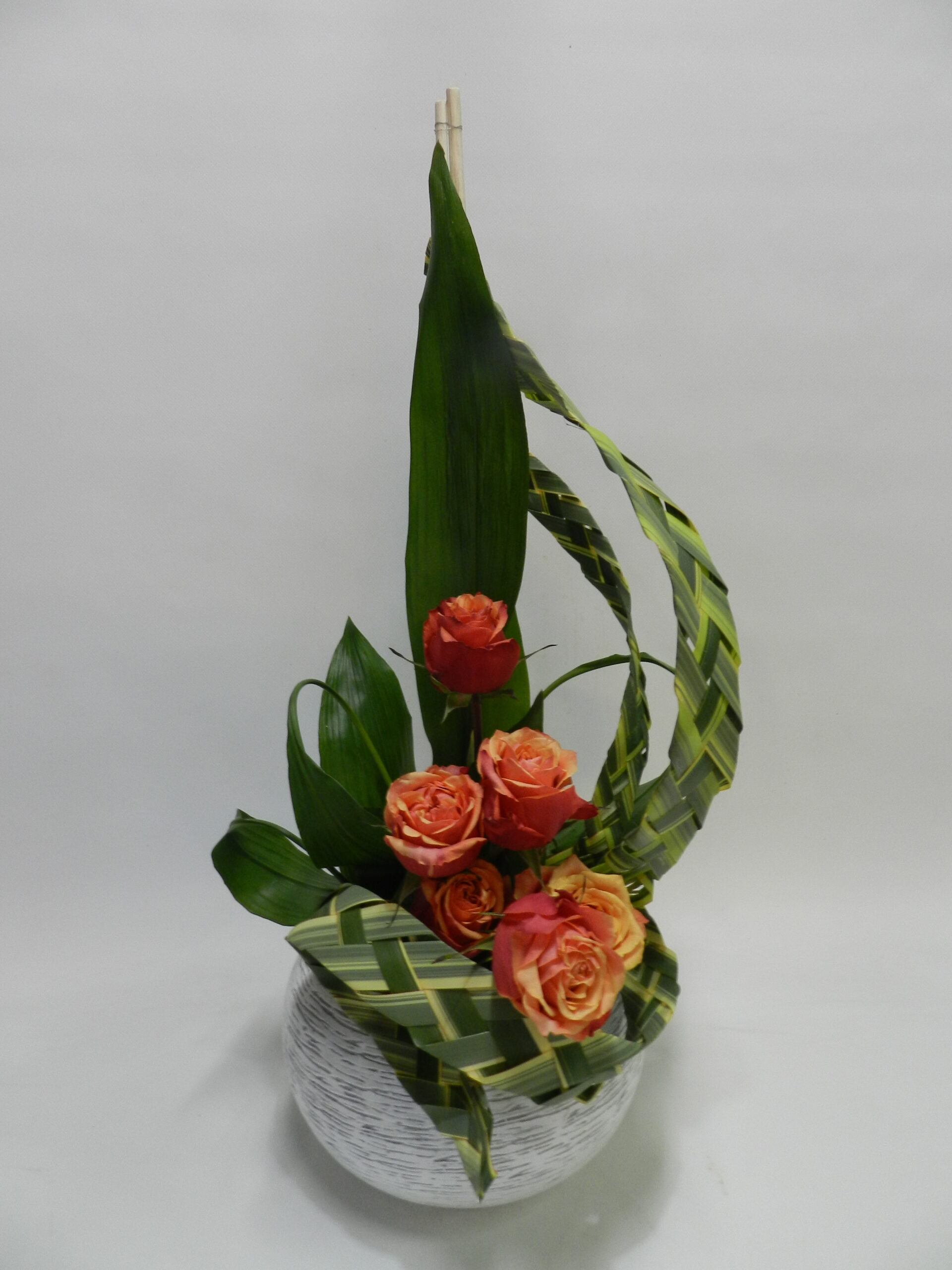 Bouquets réalisés avec phormium, aspidistra et rose.