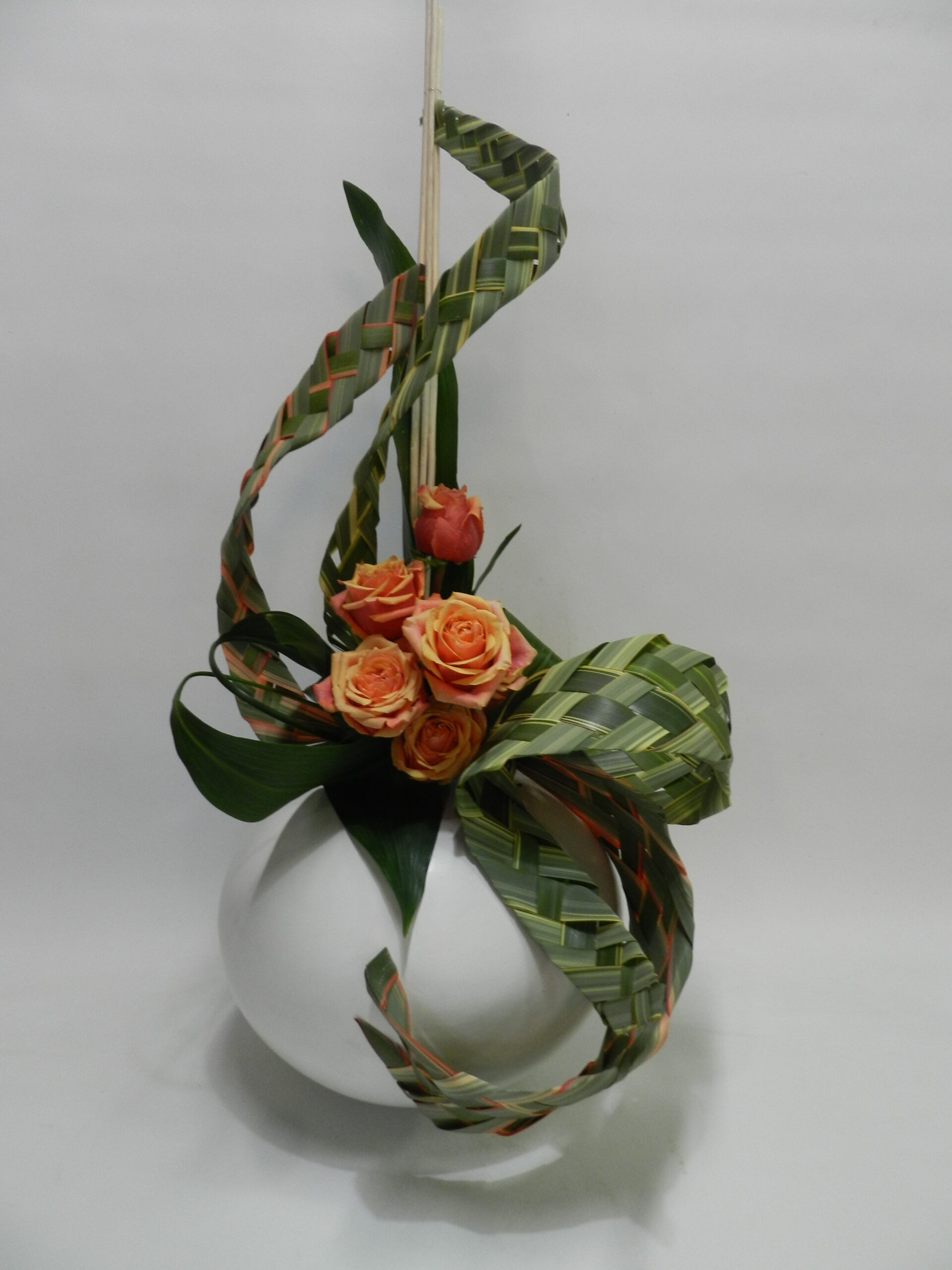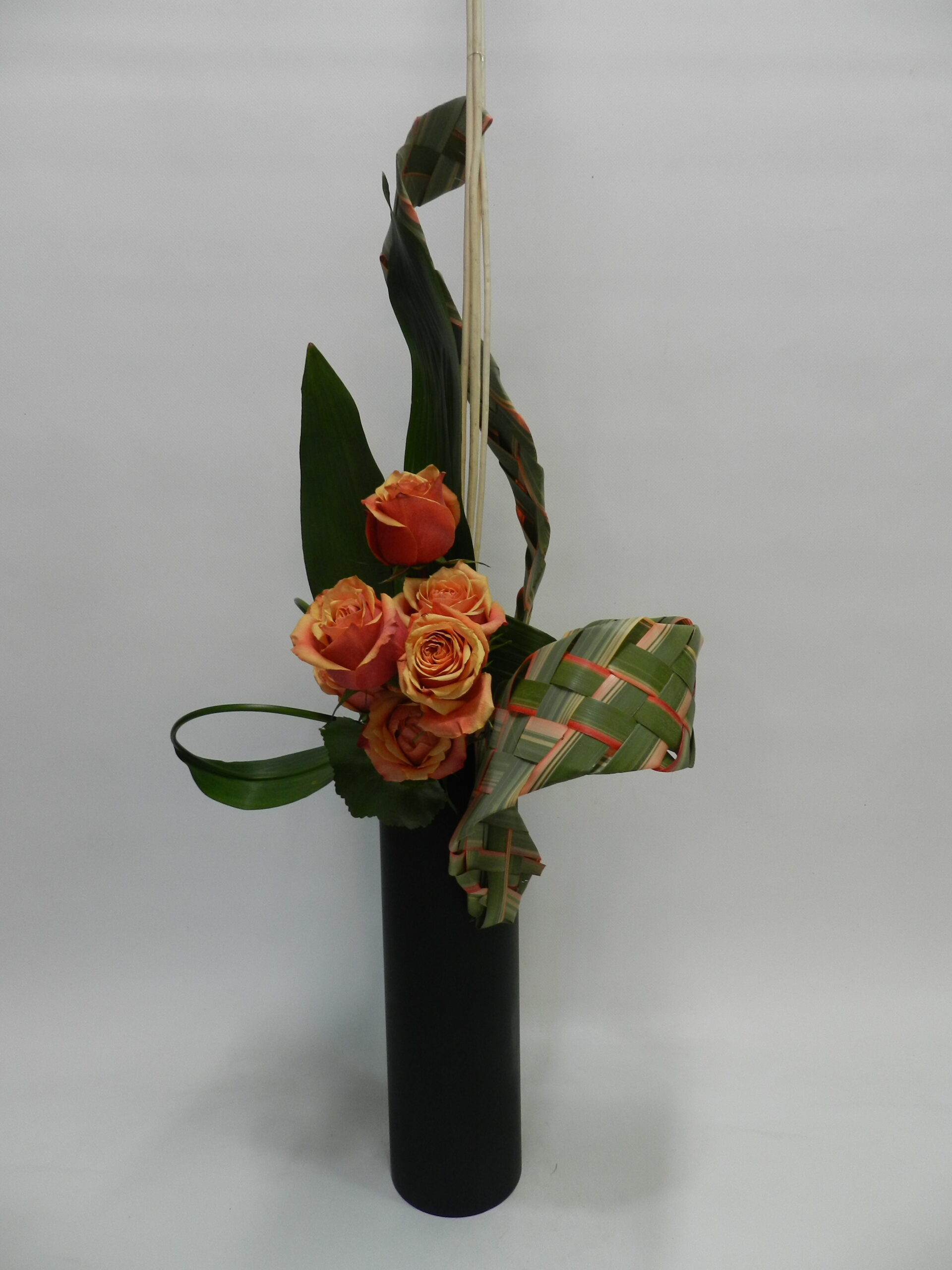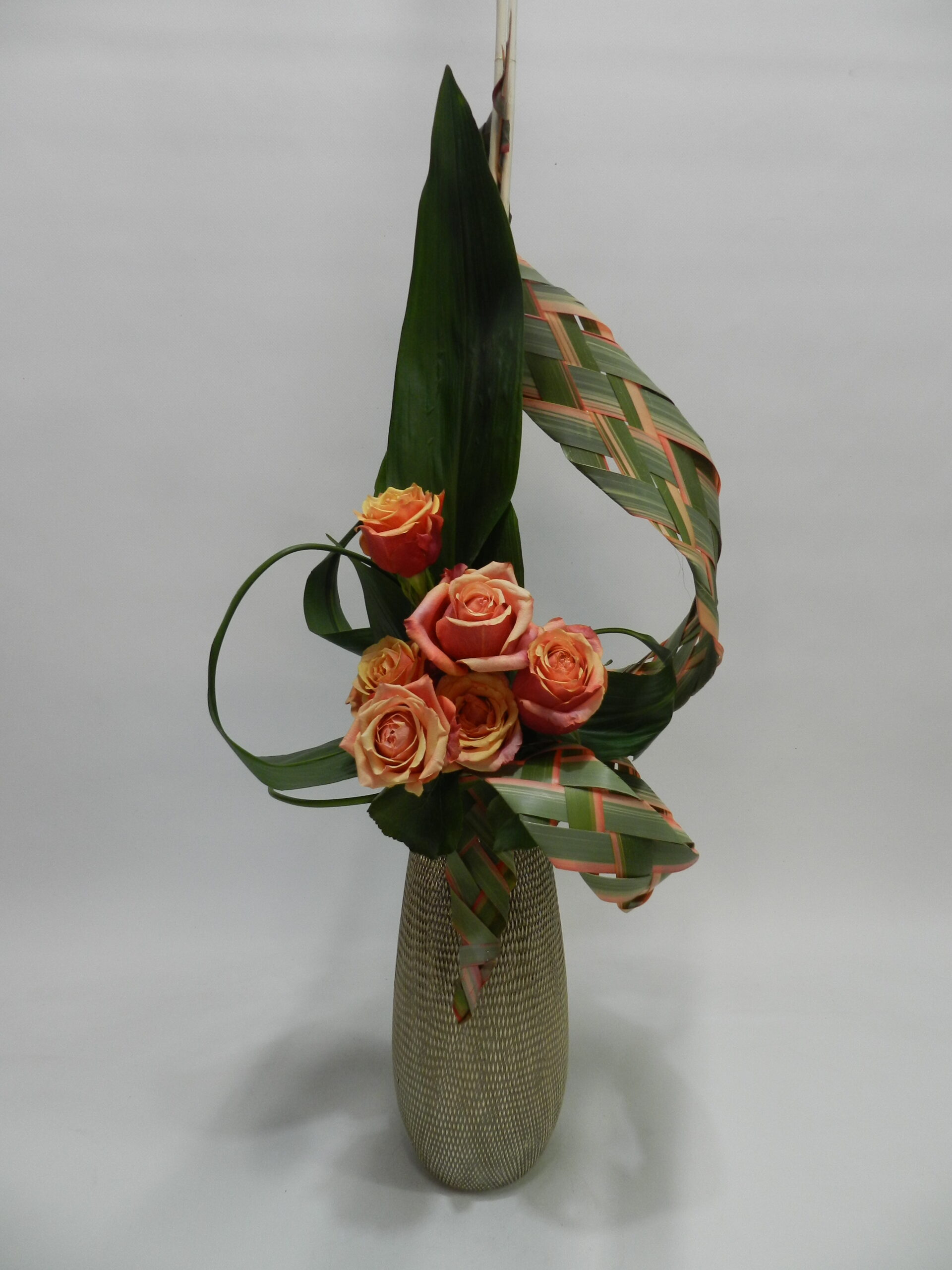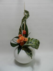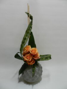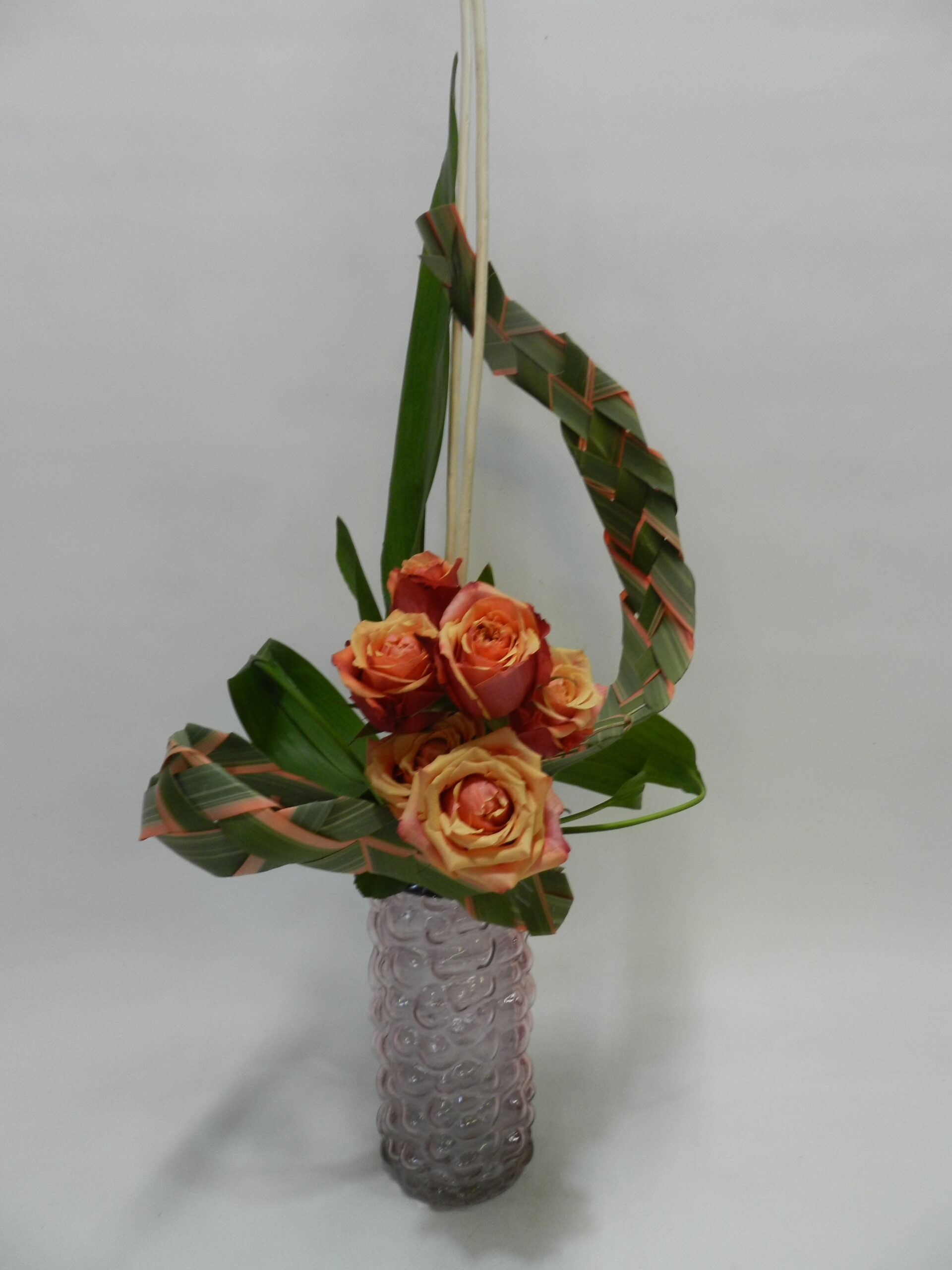Bouquets réalisés avec phormium, aspidistra et rose.