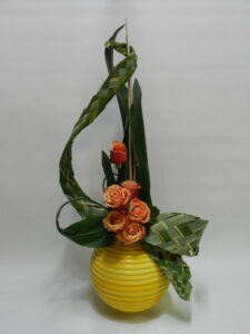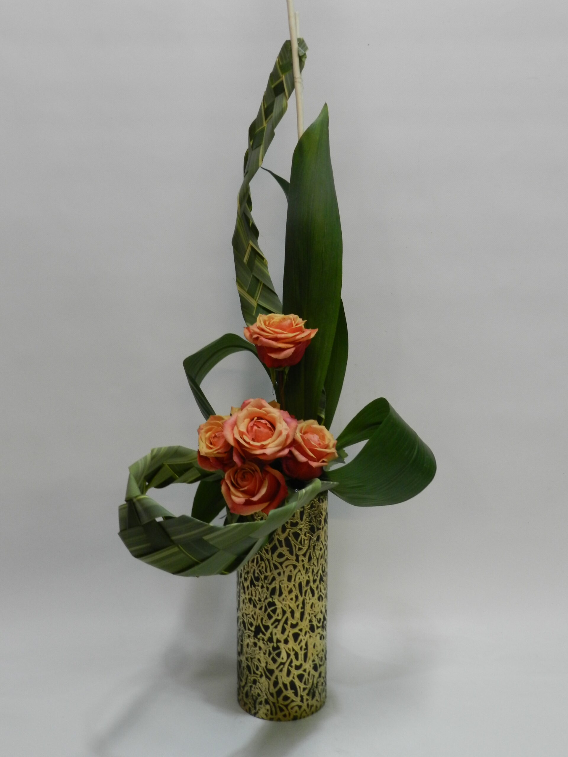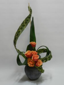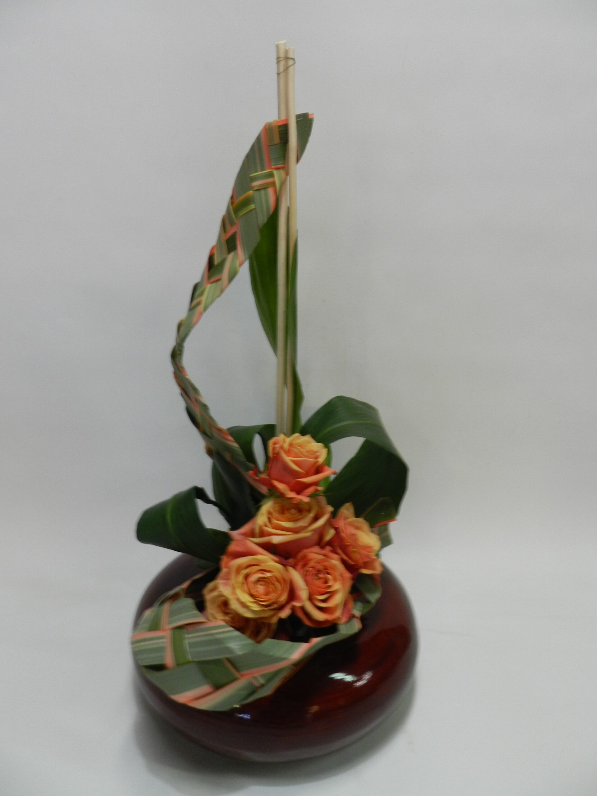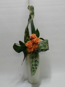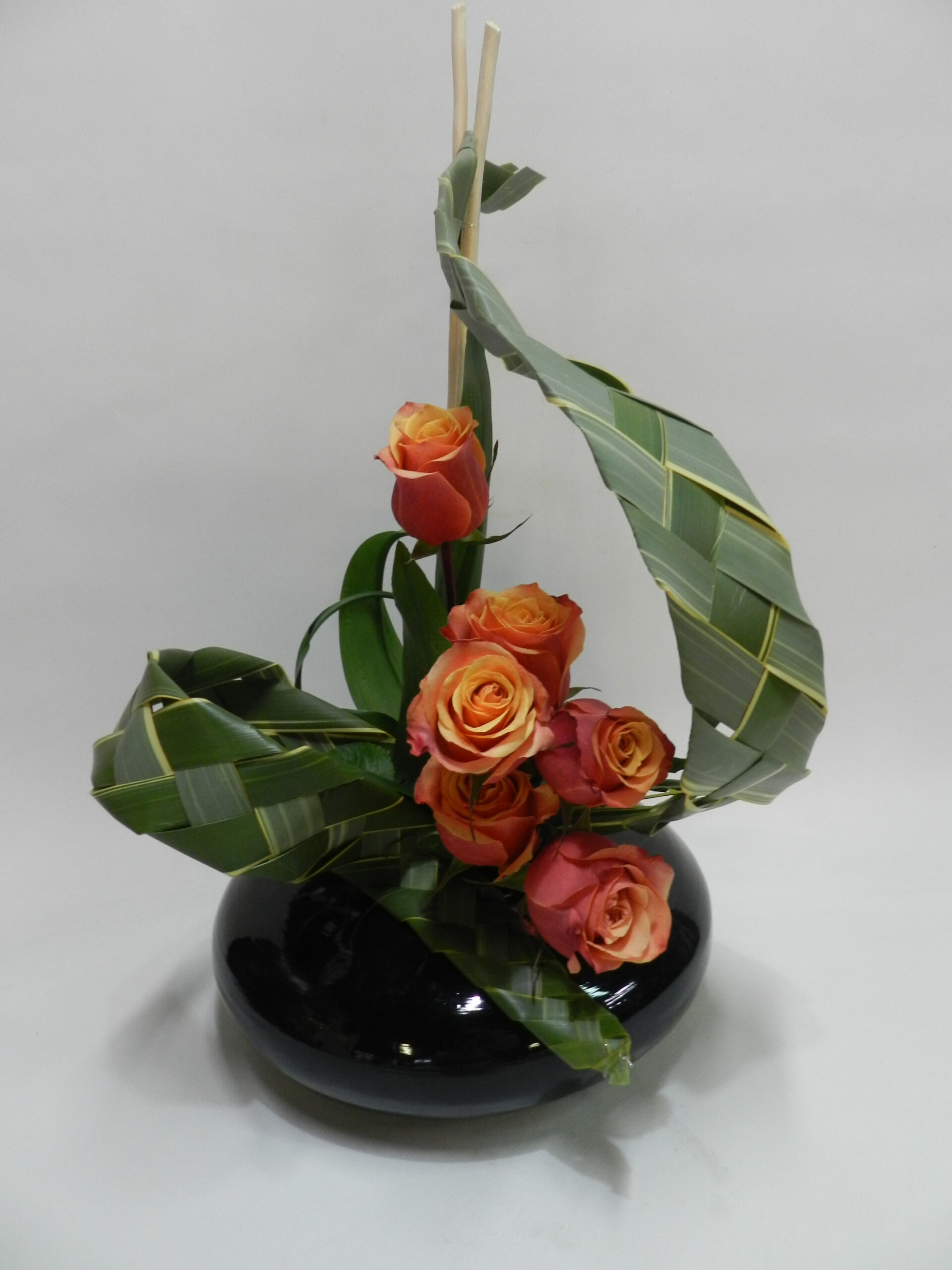 Bouquets réalisés avec phormium, aspidistra et rose.